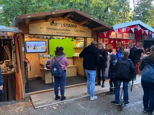 Der Bibelstand ist ein Projekt das man eine "Tradition" nennen kann. In den 70er Jahre an der Mustermesse und bis heute auf dem Petersplartz.